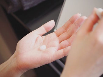 スポイトから全顔に塗布出来る量を取り、乾燥の気になる部分から塗ります。洗顔同様こすらず、手のひら全体を使って優しく肌を温めるように、目のきわなどの細かい部分は指先で丁寧に押さえるだけ。